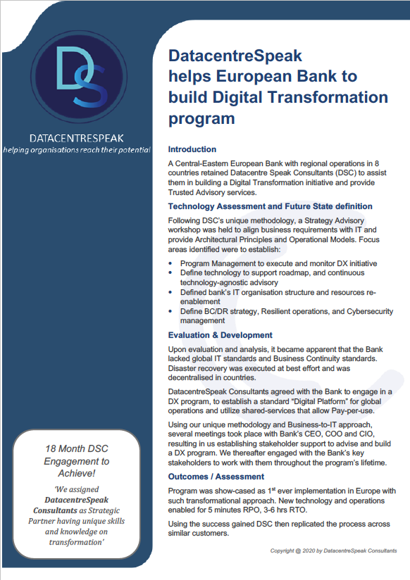 Digital transformation can be a daunting area, as it encompasses multiple aspects of our digital infrastructure. With Digital Speak offerings, we are focusing on optimising the operational agility of your hybrid infrastructure, whether it be a multi-tenanted DC, IoT devices, globally connected hybrid infrastructure or a wholly owned, private DC. If you offer cloud services, then we can help you with your Edge strategy, and get you closer to your clients with faster services.
